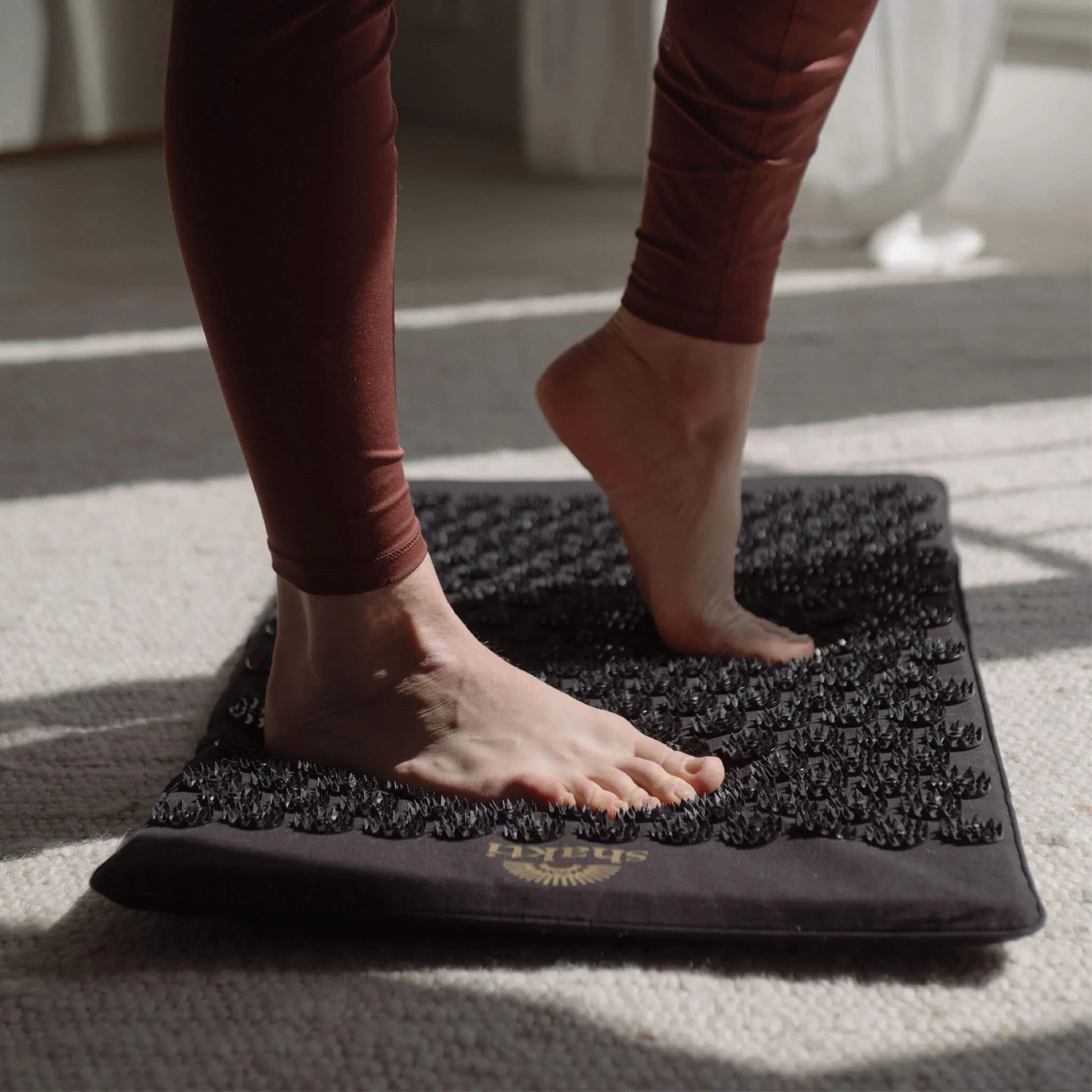 • Combining your Shakti Mat with yoga and meditation—either seated or through poses like sphinx and pigeon—incorporates acupressure into your recovery or wellbeing routine.